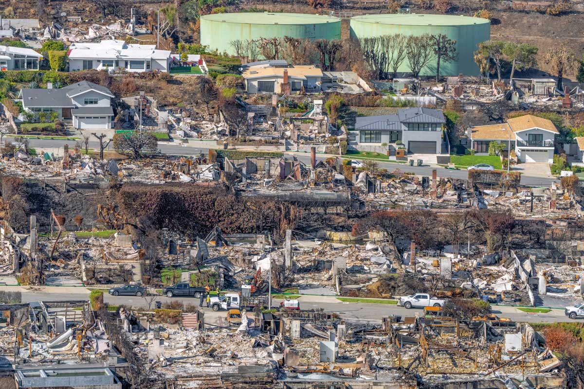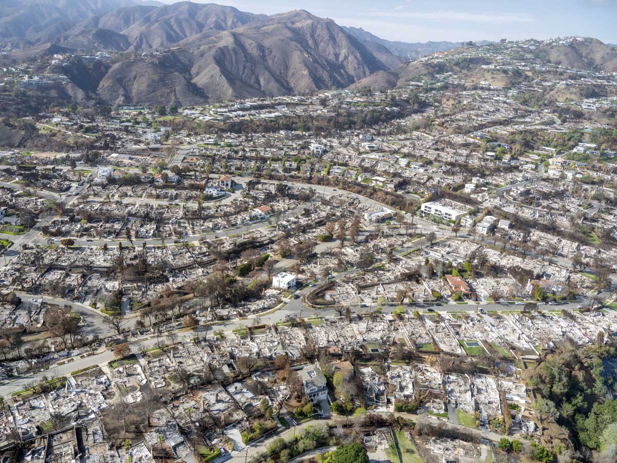 Vista aérea de un paisaje arrasado por incendios en Los Ángeles. ©Jeffrey Milstein