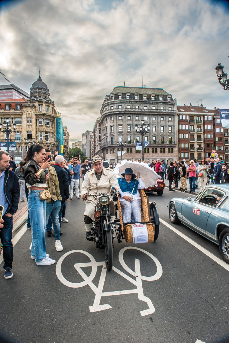 Fue el perfecto arranque para una jornada que desbordó las retinas. Desde primera hora de la mañana, las zonas de exposición estaban abarrotadas por un público tanto experto como neófito. No hace falta saber de motos o coches para disfrutar de diseños y detalles. Incluso de camiones, que también los hubo. Desde el coche más antiguo que guarda el Consistorio del Cuerpo de Bomberos de la villa, que arrancaba el recorrido, hasta los dos, también con solera, que lo cerraban. Sin olvidar el camión con el que nuestro Livingstone bilbaíno compite en el Dakar. Unos salieron desde el Arenal y otros desde San Mamés para recorrer la Gran Vía. No faltaron el Mercedes alas de gaviota, coche más fotografiado de la exposición de mayor éxito en la Historia del Guggenheim, el último M1 que existe en España, una unidad del Bristol 402 —única en el mundo— con matrícula de Bilbao y, si hablamos de motos, la moto inglesa BSA de 1913 con sidecar que manejaba Julián Sesma y María de pasajera, vestidos de la época, y la Ossa de Santiago Herrero, con la que se inició el exitoso camino del motociclismo español. Y todo ello acompañado de música en un autobús turístico de dos pisos, con una banda de rock como avance del BBK Legends. Kilómetro y medio de ruta que trasladaba a los presentes a ese destino llamado empatía. No hablamos de nostalgia, que también, sino emociones olvidadas. Niños y niñas descubrían el ayer de sus mayores. Y estos rebuscaban en su memoria instantes compartidos. O vividos en soledad. Los buenos y malos ratos, con frecuencia, se viven sobre el asfalto y aparcados en un lugar que ya no existe. O quizá sí. Se confirmó el sábado. No es lo mismo clásico que viejo. El segundo tiene años. El primero experiencia y actitud. La misma que se mostró el domingo en una doble cita. La salida del Tour turístico “Villa de Bilbao” desde el estadio de San Mamés, con el itinerario Bilbao-Bakio por la costa. Y, en el mismo lugar y misma hora, la salida del Rally de regularidad “Villa de Bilbao”, con el itinerario Bilbao-Galdames, hasta Torre Loizaga.