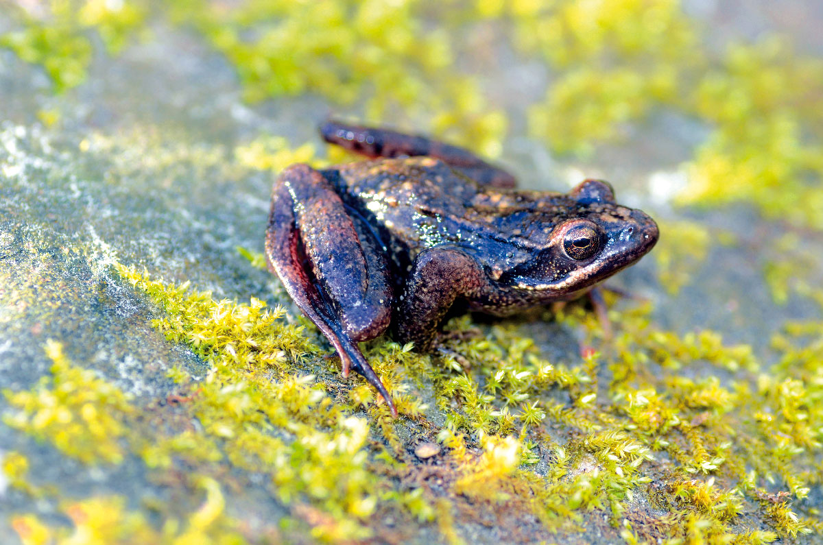 Si la estación es la propicia, podremos ver algunos anfibios junto a las pequeñas pozas: la salamandra común, dos especies de tritones (el jaspeado y el palmeado), el sapo común y el partero, y, con un poco de suerte, la esquiva y escasísima ranita patilarga, que abandona las laderas del monte para acudir al agua a reproducirse. Reptiles como la culebra de Esculapio y la culebra viperina (o culebra de agua) también forman parte de este puzle biológico.