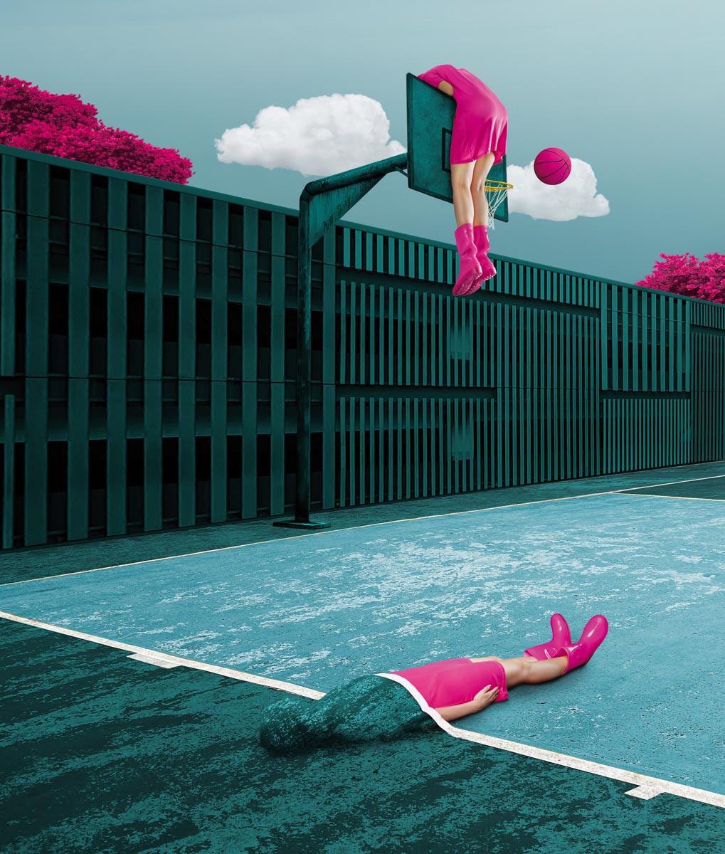 Un ensayo visual sobre la derrota y la resiliencia. Algunos personajes se levantan, otros caen. La imagen se convierte en reflejo de la contradicción: entre victoria y fracaso, fuerza y vulnerabilidad.