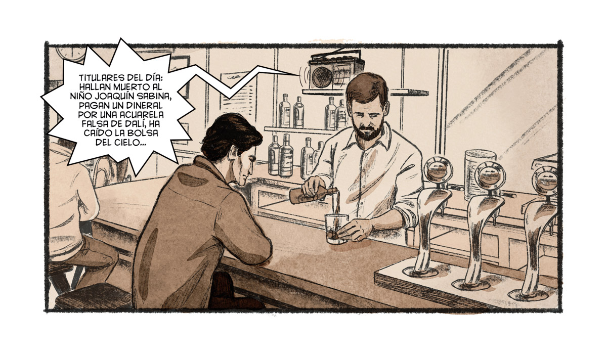 Me llamó mucho la atención aquella “gesta” suya de lanzar un cóctel molotov a una sucursal bancaria en su época de estudiante. El cómic intenta explicar bien todo el contexto cultural de aquellas protestas universitarias antifranquistas para entender bien las razones de aquella acción que le llevaría al exilio.